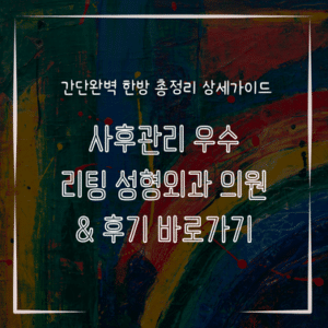 사후관리 우수 리팅 성형외과 의원 & 후기 바로가기