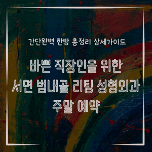 바쁜 직장인을 위한 서면 범내골 리팅 성형외과 주말 예약
