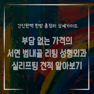부담 없는 가격의 서면 범내골 리팅 성형외과 실리프팅 견적 알아보기