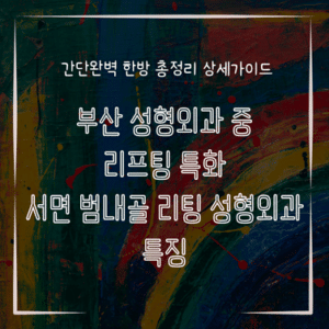 부산 성형외과 중 리프팅 특화 서면 범내골 리팅 성형외과 특징