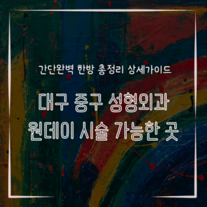 대구 중구 성형외과 원데이 시술 가능한 곳