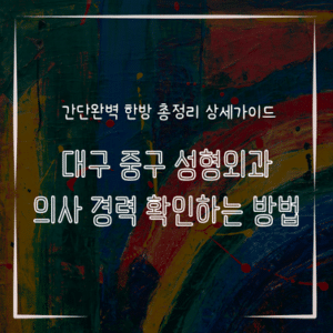 대구 중구 성형외과 의사 경력 확인하는 방법