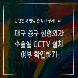 대구 중구 성형외과 수술실 CCTV 설치 여부 확인하기