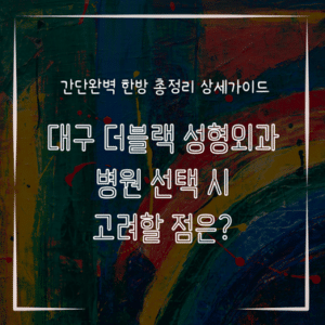 대구 더블랙 성형외과 병원 선택 시 고려할 점은?