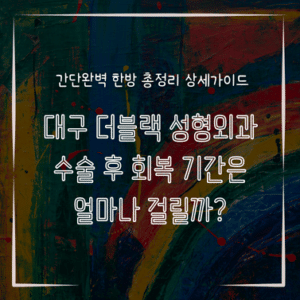 대구 더블랙 성형외과 수술 후 회복 기간은 얼마나 걸릴까?