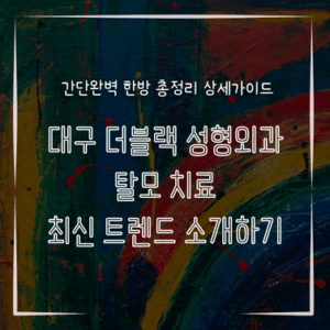 대구 더블랙 성형외과 탈모 치료 최신 트렌드 소개하기