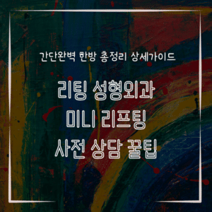 리팅 성형외과 미니 리프팅 사전 상담 꿀팁