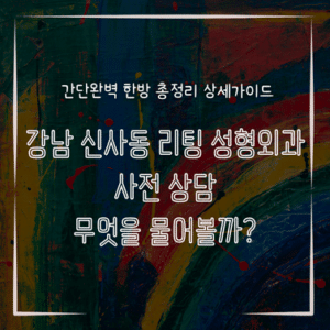 강남 신사동 리팅 성형외과 사전 상담 무엇을 물어볼까?
