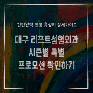 대구 리프트성형외과 시즌별 특별 프로모션 확인하기