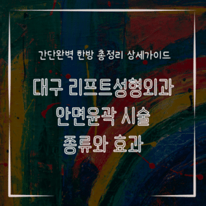 대구 리프트성형외과 안면윤곽 시술 종류와 효과