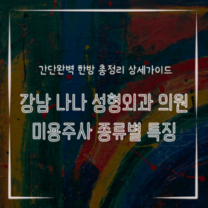 강남 나나 성형외과 의원 미용주사 종류별 특징