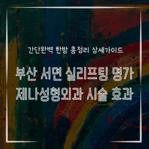 부산 서면 실리프팅 명가 제나성형외과 시술 효과