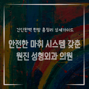 안전한 마취 시스템 갖춘 원진 성형외과 의원